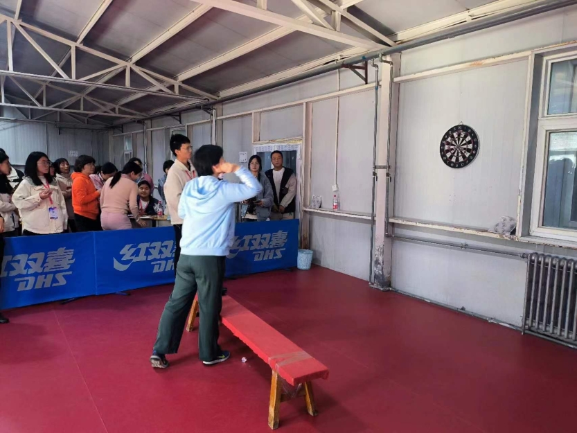 王莉老师和张金平老师成功挺进女子教工组投飞镖决赛,张辉老师成功挺进男子教工组飞镖决赛。