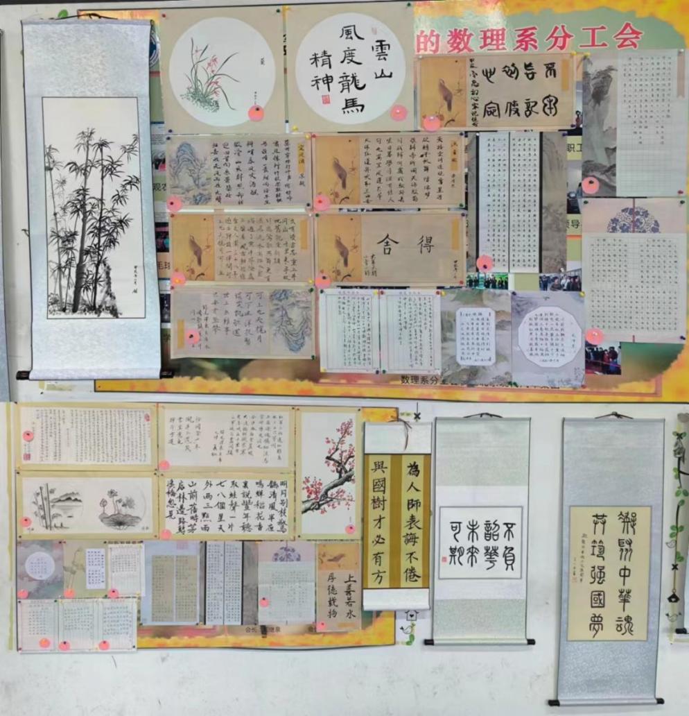 分工会统一提供书画用纸。书画工具以钢笔和毛笔为主,体例不限,风格自由。老师们踊跃报名,提供了百余幅作品。作品多以唐诗宋词以及毛泽东诗词、长城等中华优秀传统文化、革命文化、祖国的壮美河山等为主要内容。这些作品主题鲜明,底蕴丰富,风格各异,充分展现了红桃视频