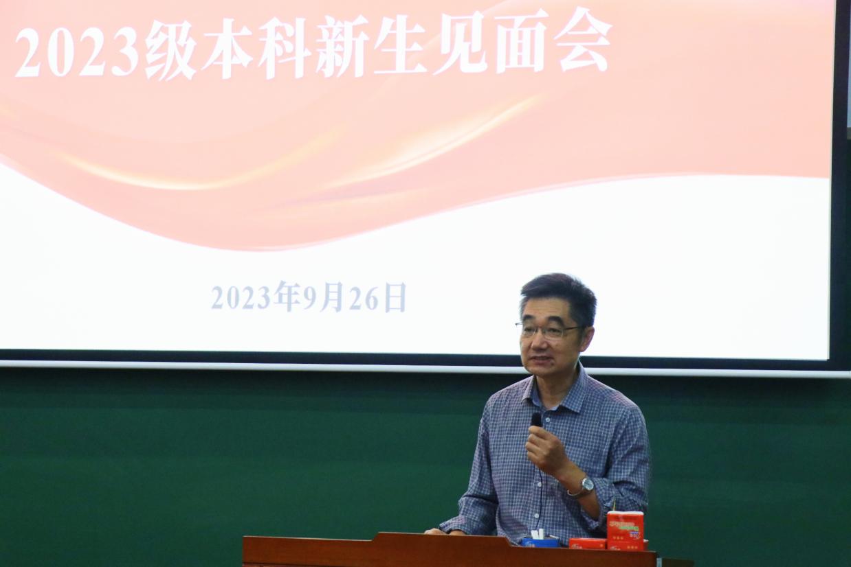 全体师生向2023级新生表示了最热烈的欢迎。他以欧拉公式之美展开此次讲话,激发同学们发现数学、物理中的独特之美,并向同学们提出三点期望:一是做脚踏实地的行动者,二是做创新发展的探索者,三是做堪当大任的担当者。