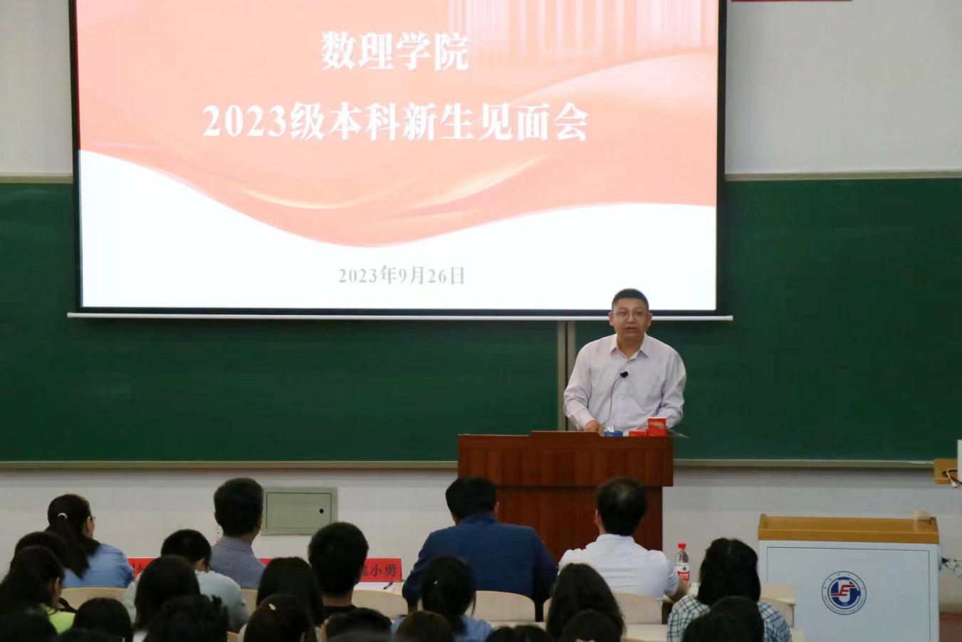 党委书记包小勇、院长郭宝珠、党委副书记林林、副院长赵红涛和刘纪彩出席会议,2023级新生辅导员宋金溪以及2023级全体本科生参加会议。党委副书记林林主持见面会。
